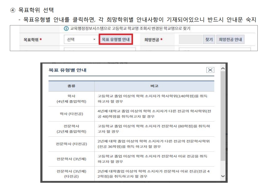 - 대상자: 고졸자, 대학 중퇴자, 직장인, 자격증 보유자 등
