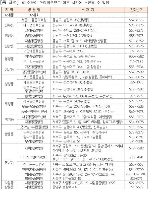- 동 지역 병원에서는 등록되지 않은 반려견은 접종 불가